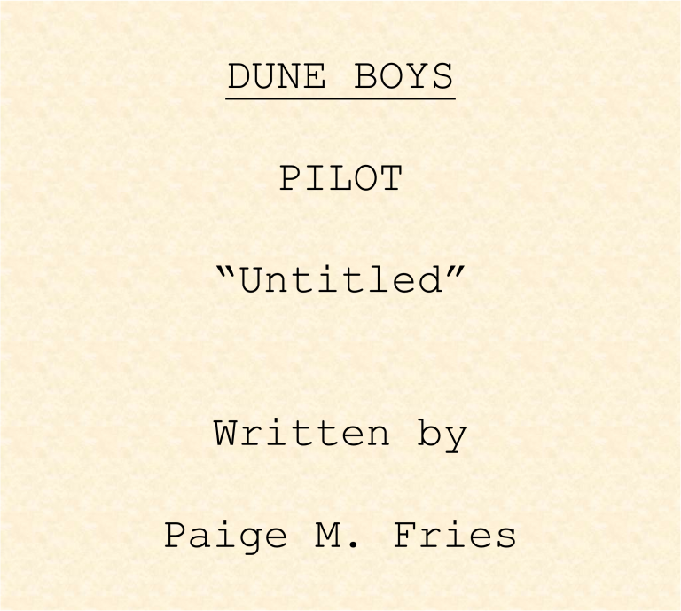 Go Back To Library 1 HR TV PILOT, SPORTS DRAMEDY DUNE BOYS This script is still a work in progress! As such, the explanation of how it came to be is forthcoming. Stay tuned! If I had to give a sneak peek: this is for fans of NASCAR, Formula 1, Friday Night Lights, and, oddly enough, the Sandlot.
